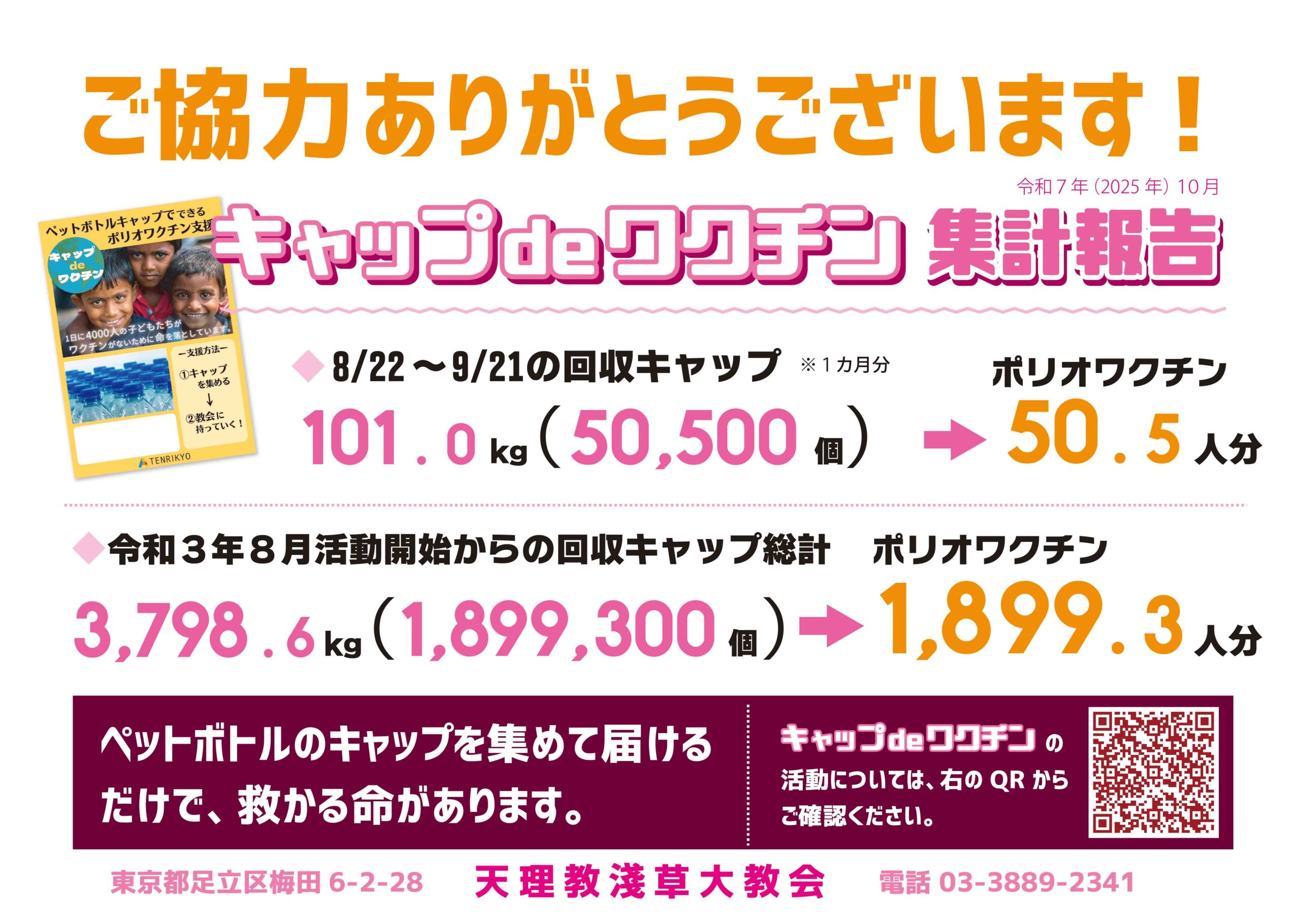 キャップdeワクチン 〜ペットボトルキャップでできるポリオワクチン支援〜 このたび、淺草大教会では…